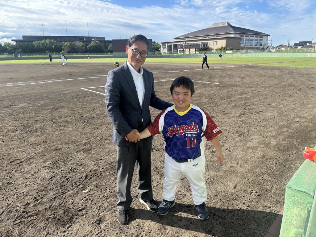 身体障害者野球大会では私も顧問を務めています。築地くんに会えるかなと思っていましたが、ちょっと体を痛めたとのことで息子さんが参加してました。
